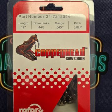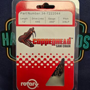 Copperhead 12 in. Saw Chain (44E, .050 gauge, 3/8 LP) is a durable replacement chain designed for smooth, efficient cutting. Built for reliable performance, it delivers clean cuts and dependable operation when properly maintained. Ideal for compatible small chainsaws used by homeowners and professionals.