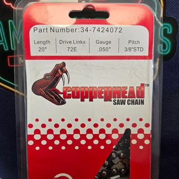 Copperhead 20 in. Saw Chain (72E, .050 gauge, 3/8 STD) is a heavy-duty replacement chain designed for strong, efficient cutting on compatible chainsaws. Built for durability and consistent performance, it delivers clean cuts and reliable operation for firewood, storm cleanup, and property maintenance. Ideal for homeowners and professionals using mid- to full-size chainsaws.