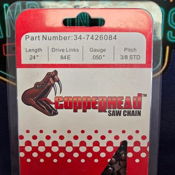 Copperhead 24 in. Saw Chain (84E, .050 gauge, 3/8 STD) is a heavy-duty replacement chain built for powerful, efficient cutting on compatible chainsaws. Designed for durability and consistent performance, it delivers clean cuts for firewood, storm cleanup, and demanding property maintenance jobs. Ideal for homeowners and professionals using full-size chainsaws.