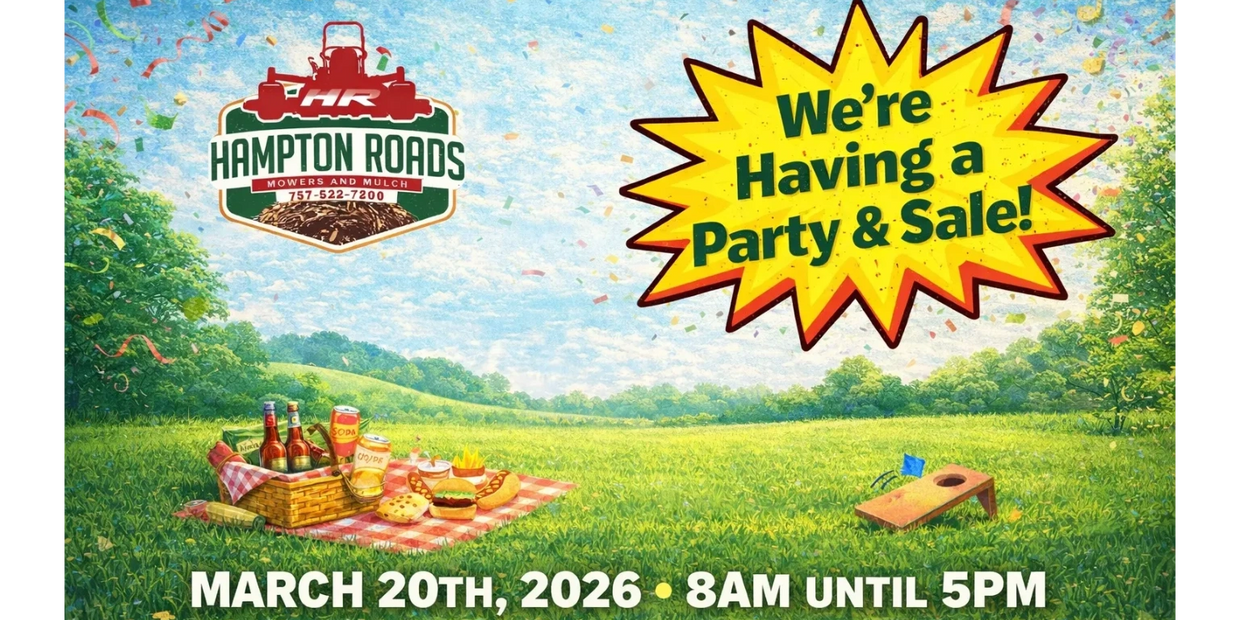 The weather is turning, the grass is growing, and it’s time to get outside! To celebrate the start of the season and our official one-year anniversary, Hampton Roads Mowers and Mulch is throwing a party—and you’re invited. We want to turn the spotlight on the people who made this year possible: our loyal customers. What better way to say thank you than with a massive, store-wide discount?